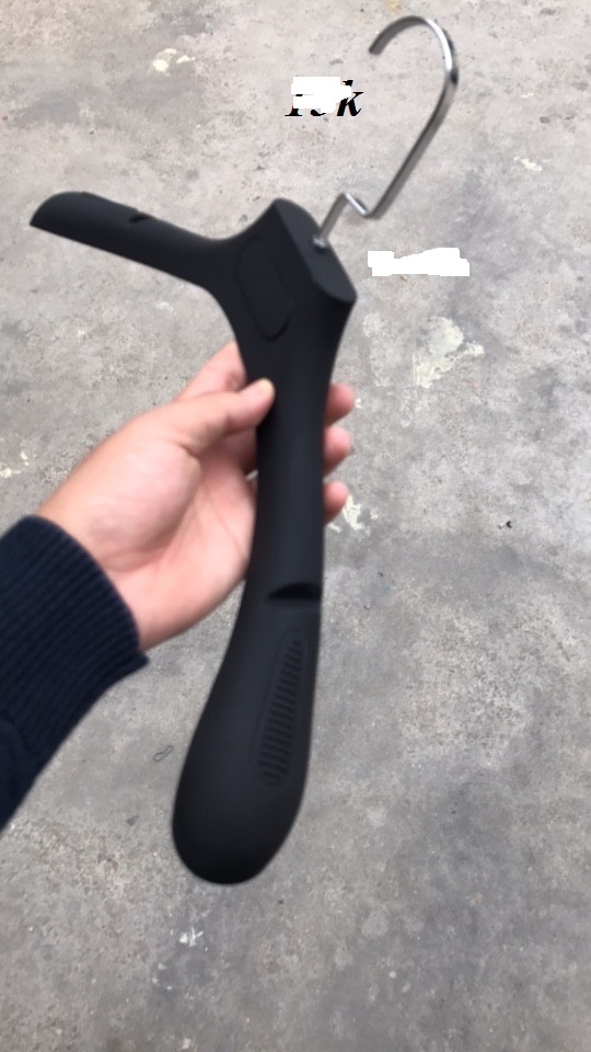 - Móc áo nhựa nhập khẩu màu đen, phun than, móc cầm rất êm tay do được phủ 1 lớp nhung (than) mỏng